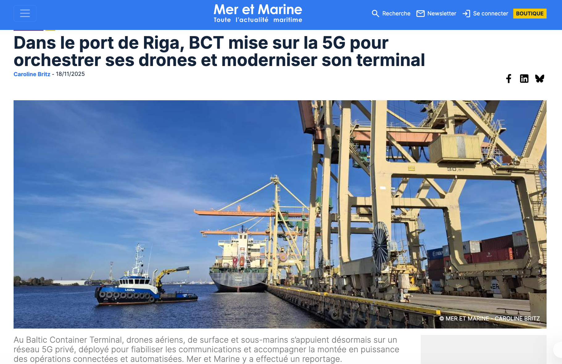 The showcase highlighted Latvian-developed technologies, including autonomous sea, air, and ground drones, advanced data transmission platforms, and secure 5G integration. Participants included LMT Group, the Freeport of Riga Authority, LVR Flote, and technology partners SUBmerge Baltic, Beyron, Spark Technologies, RTU, and Baltic Container Terminal.